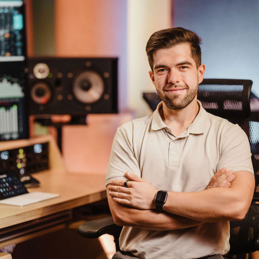 Budowa Domowego Studia Nagrań Kompleksowy kurs budowy domowego studia nagrań od podstaw. Dowiesz się jak zaplanować i przystosować przestrzeń akustycznie, dobrać odpowiedni sprzęt w swoim budżecie (monitory, interfejsy, mikrofony, słuchawki), skonfigurować komputer i oprogramowanie DAW oraz profesjonalnie nagrywać wokal i instrumenty. Kurs przeznaczony dla każdego — od zupełnych początkujących po osoby chcące usprawnić już istniejące domowe studio.