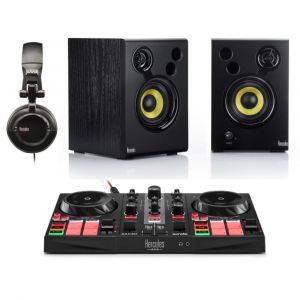 Hercules DJ Learning Kit MK2, zestaw zawierający Inpulse 200 MK2, monitory M32, słuchawki DJ45 wraz z pełną wersją DJuced - pełnowartościowym oprogramowaniem pozwalającym zrealizować Twoją imprezę oraz Serato DJ Lite.