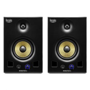 Hercules Monitor 5 to para 5 calowych monitorów aktywnych zamknięta w drewnianej obudowie.