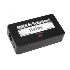 Przekaźnik – Relay - firmy MIDI Solutions zawiera sterowany przez MIDI styk zwieralny, który można zaprogramować tak, by odpowiadał na wiele różnych komunikatów MIDI