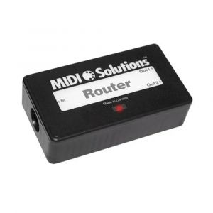 Router firmy MIDI Solutions pozwala na rozsyłanie, filtrowanie i zmianę kanałów wybranych komunikatów MIDI wysyłając je do jednego z dwóch / obu / żadnego z dwóch wyjść MIDI tego urządzenia.